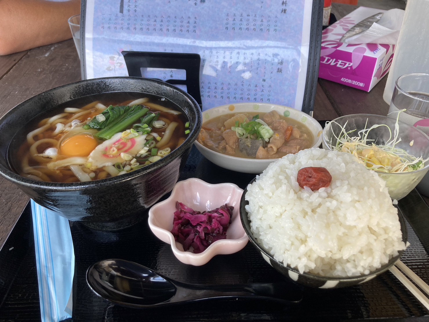 高校時代空手部主将のKはランチの月見うどん/もつ煮半ライスセット850円