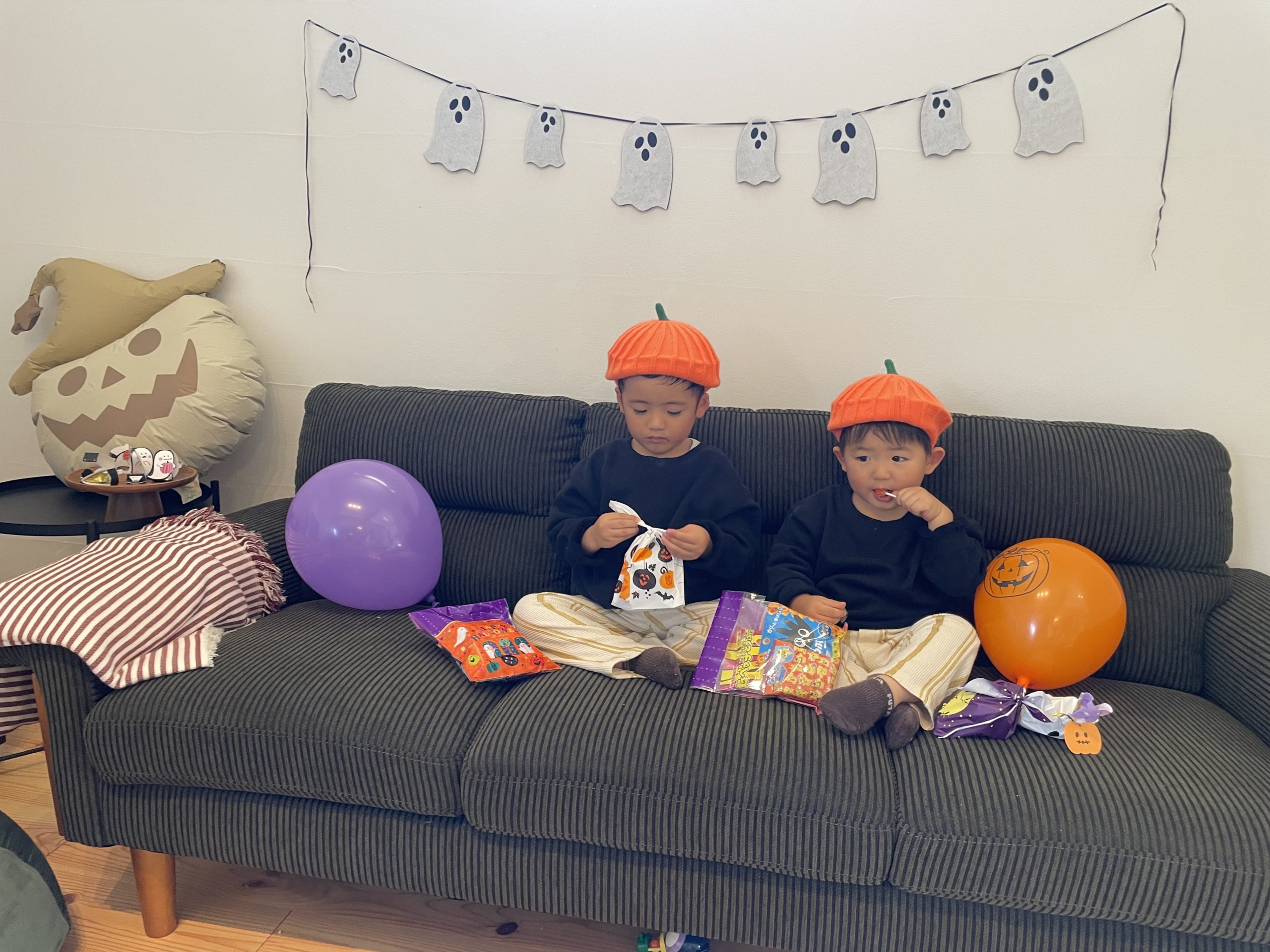 子供たちはスパイダーマンや恐竜、ミッキー、かぼちゃなど、、