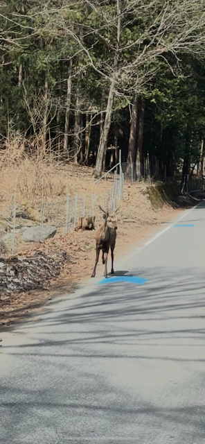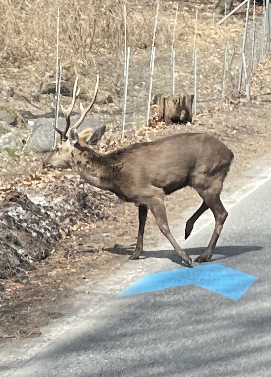 大町市の道路に立派な角のシカいました!!