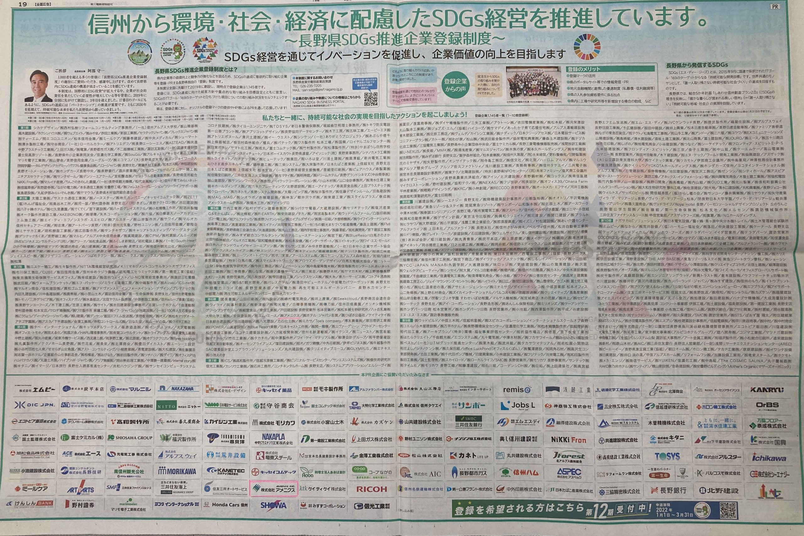 1月26日 信濃毎日新聞に見開き全面広告で長野県SDGs推進企業全社が掲載されました。