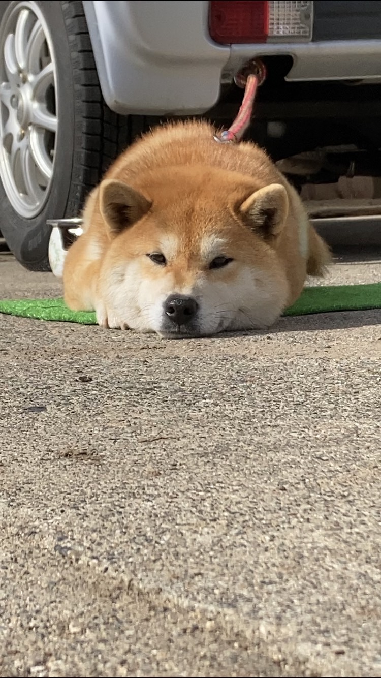 我家のくるみ(柴犬)は庭で、ほんわかしてます。