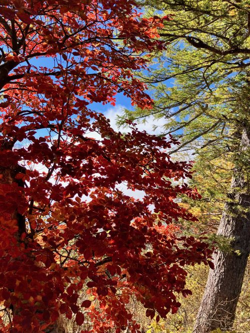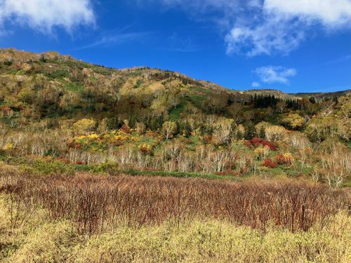 ゴンドラとロープウェイを乗り継いで山頂駅へ向かう間は霧の中で視界が悪かったのですが、自然園に到着すると雲が晴れ、綺麗な紅葉を見ることが出来ました!