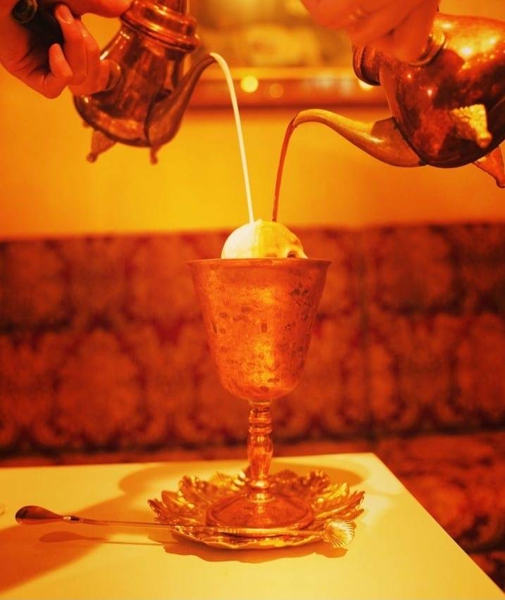 お目当ては、目の前で珈琲とミルクを交互に注いてくれるオレ。