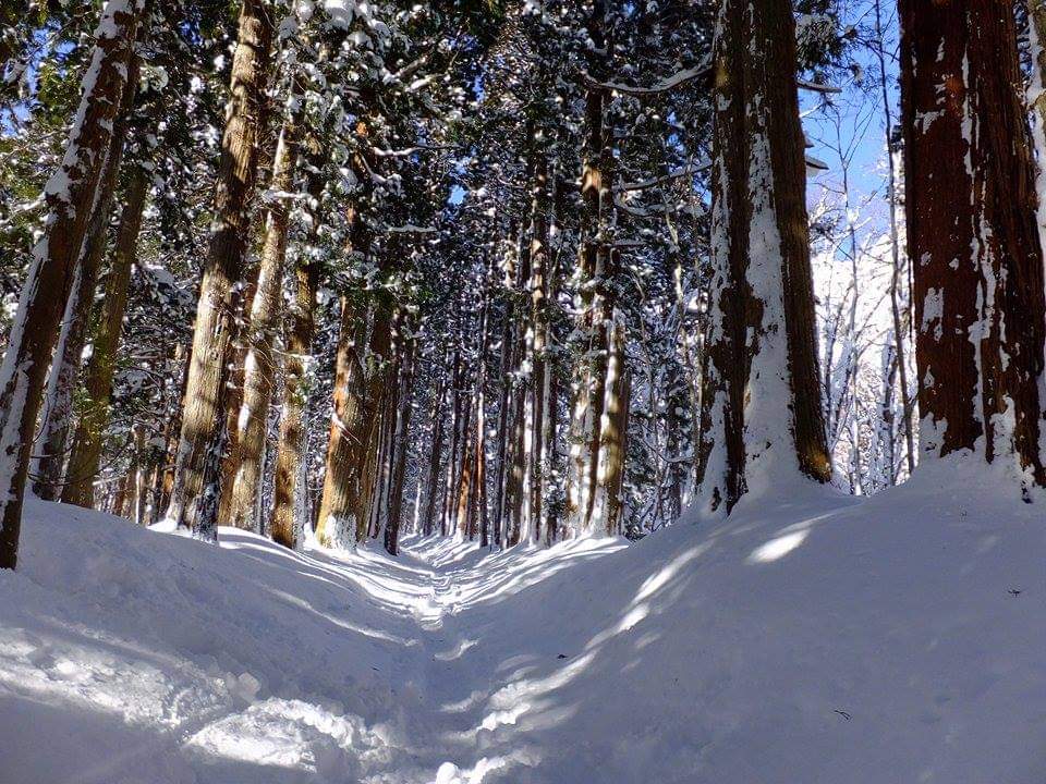 真っ白な雪と杉並木がとても綺麗です。