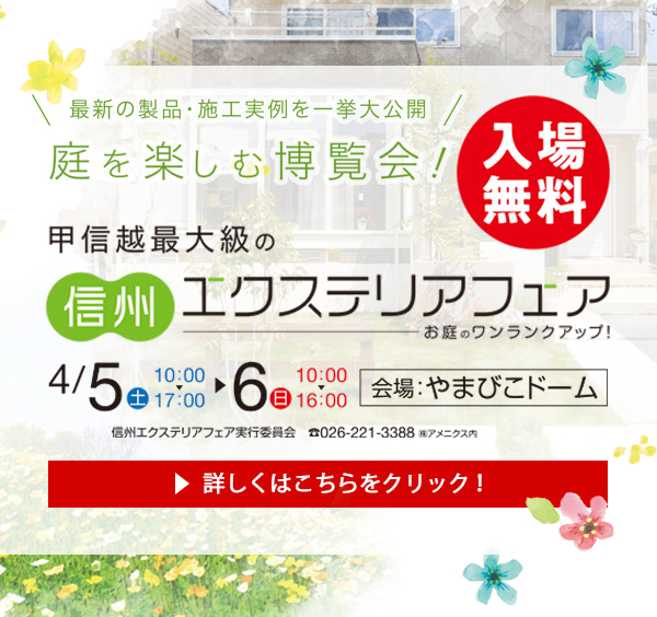 お知らせ お知らせ 夏季休業のお知らせ 2025年7月23日 詳しくはこちら » 長野県内におけるエクステリア資材の卸売の売上高、2025年1月期決算額も連続でナンバーワン! 2025年5月30日 詳しくはこちら » 6月7日(土)・8日(日)信州エクステリアフェアin長野(2025年)開催いたします! 2025年5月26日 詳しくはこちら » 4月5日(土)・6日(日)信州エクステリアフェア(2025年)開催いたします! 2025年4月1日 詳しくはこちら » 年末年始のご案内 2024年11月28日 詳しくはこちら » 2025年営業日カレンダー 2024年11月28日 詳しくはこちら » 夏季休業のお知らせ 2024年7月19日 詳しくはこちら » 長野県内におけるエクステリア資材の卸売の売上高、2024年1月期決算ナンバーワン! 2024年6月6日 詳しくはこちら » 6月1日(土)・2日(日)信州エクステリアフェア(2024年)in長野を開催いたします! 2024年5月20日 詳しくはこちら » « 前 ページ1 ページ2 ページ3 ページ4 ページ5 次 »